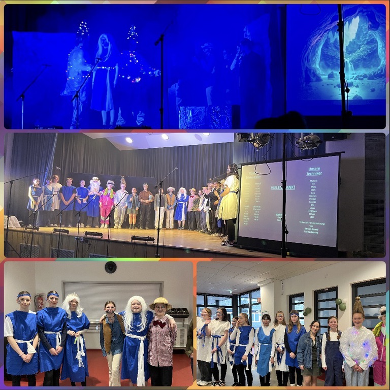 Das von den Sekundarschülerinnen und -Schülern unter Leitung von Frau Stein-Waßmann eingeübte Stück „Atlantis“ begeisterte die Grundschulkinder und zog sie von Beginn an in seinen Bann. Ein Jahr lang schrieben die Künstler das Stück um, probten, verwarfen und lernten - fast jede Pause wurde über den langen Zeitraum geopfert. Heraus kam ein spannendes und unterhaltsames Theaterstück, das Dank der effektvollen Technik mit Licht und Ton perfekt in Szene gesetzt wurde. Die Themen Zusammenhalt, Mut und Freundschaft wurden von den 39 Akteuren actionreich aufgearbeitet.