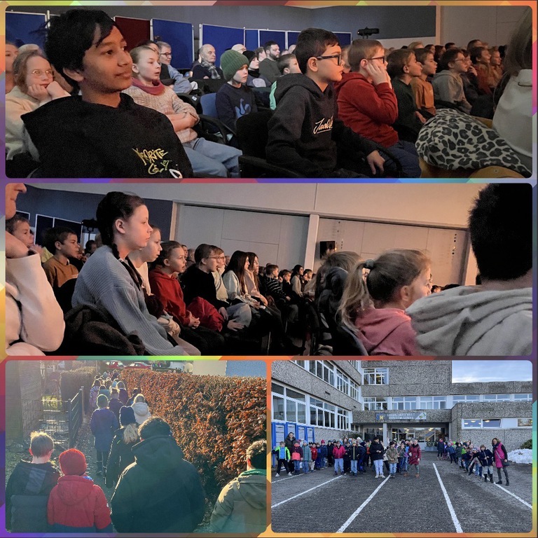 Alle Kinder der Schule haben mitgemacht. Die Schülerinnen und Schüler und das Schulteam waren mit Reflektoren, Warnwesten, heller Kleidung, Blinklichtern oder Lichterketten ausgestattet im Straßenverkehr unterwegs und haben damit auf sich und die Sicherheit von Kindern und Fußgängern aufmerksam gemacht.