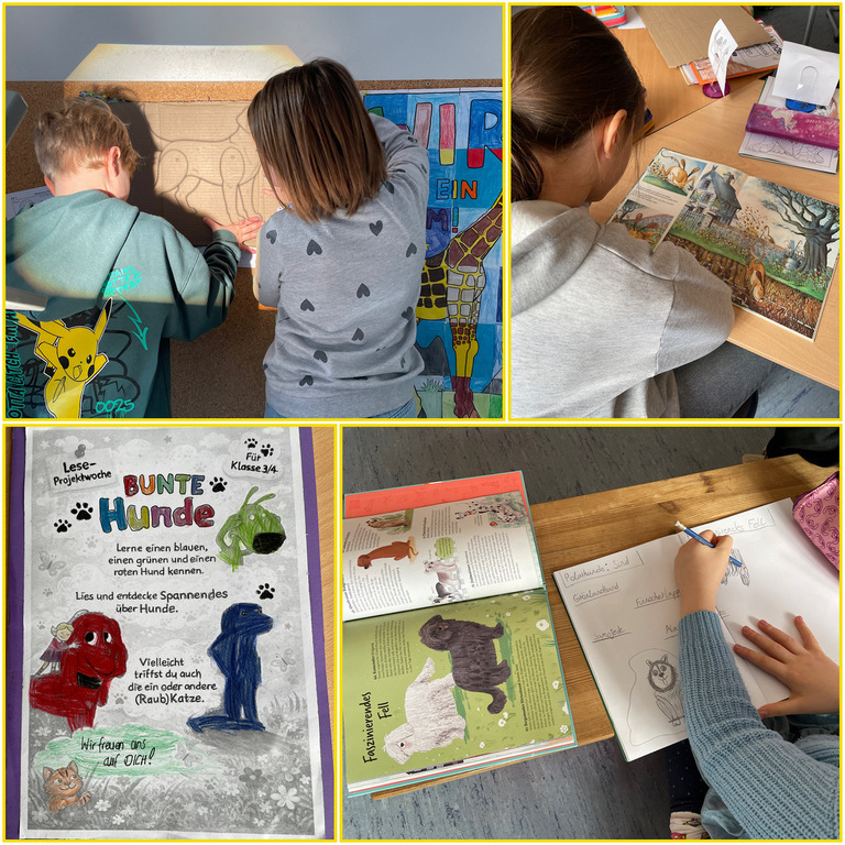 Die beiden Halbwochen rund um die Karnevalstage haben wir gut genutzt und uns ausführlich mit Büchern und Lesen beschäftigt. In jahrgangsgemischten Gruppen aus den Klassen 1/2 und 3/4 sowie einem Mehrsprachigen Vorlesetheater für die Klassen 2-4 haben sich die Kinder mit Literatur zu verschiedenen Themen beschäftigt: