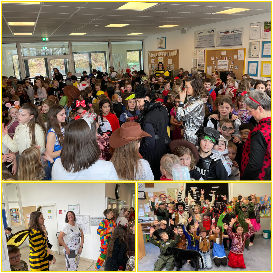 Traditionell feiern wir an der KGS den Karneval am Altweiberdonnerstag. Alle Kinder dürfen in bunten und lustigen Verkleidungen in die Schule kommen. In den Klassen wird getanzt, gebastelt und gespielt. Mit der großen Polonaise durch das Schulgebäude und einer Karnevalsparty in der Aula endet ein karnevalistischer Schulmorgen.