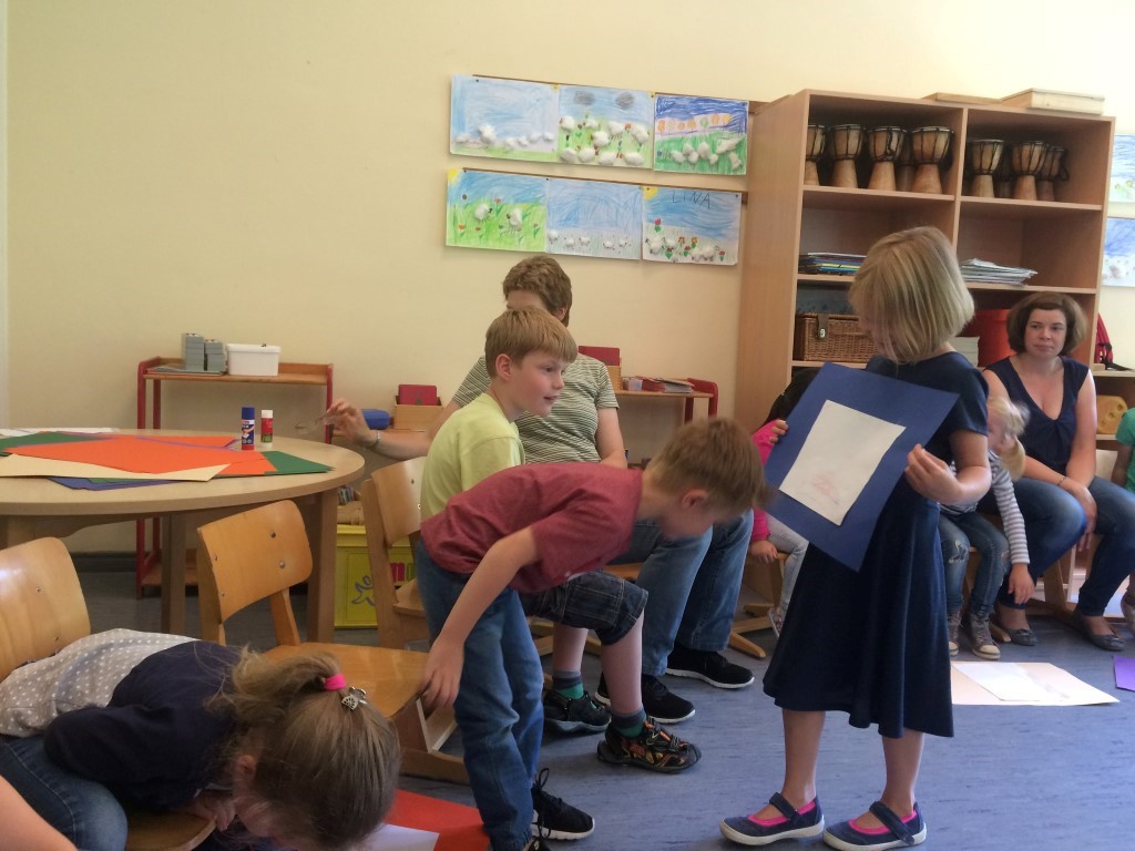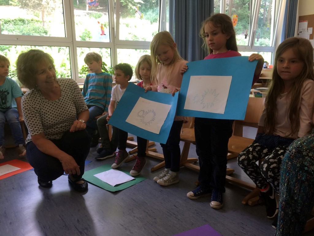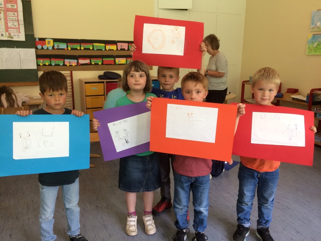 Am Montag, den 26.06.2017, trafen sich einige Maxikinder aus dem Kirchhundemer Kindergarten mit den Schülern der AG "Haus der kleinen Forscher", um gemeinsam in die spannende Welt der einfachen Maschinen von Lego Education einzutauchen. Zu Beginn des Treffens lernten sich Kinder, Erzieherinnen und Lehrerinnen in einem Stuhlkreis kennen. Frau Kirchhoff zeigte allen ein Bild von einem Lego-Bauwerk und die Kinder stellten zunächst Vermutungen an, um was es sich auf dem Bild handelt. Einige kamen schnell darauf, dass sich das gebaute Teil wahrscheinlich bewegen könnte. Es fielen Begriffe wie "drehen" und "Karussel". In kurzer Zeit fanden sich gemischte Gruppen, bestehend aus einem Schulkind und zwei Maxikindern, und mit Feuereifer gingen alle ans Werk: Baupläne wurden studiert, verschiedene Möglichkeiten des Zusammensetzens besprochen und schließlich schafften es alle Gruppen, das Karaussel fertig zu stellen. Damit die Kinder sich weiter auf altersgemäße Weise mit der Funktion ihres Karussels auseinandersetzen konnten, lautete die nächste Aufgabe: Zeichne ab, was du eben gebaut hast. Für einige Kinder erwies sich dieser Auftrag als zu komplex und so entstand als Vereinfachung die Idee: Zeichne, was du besonders wichtig findest. Die Kinder kamen so zu vielen unterschiedlichen Ergebnissen: einige malten die Zahnräder, andere konzentrierten sie auf die beiden Figuren und wieder andere zeichneten das komplette Bauteil. Im Stuhlkreis konnten die Kinder anschließend ihre Werke vorstellen und erläutern, bevor es ans gemeinsame Aufräumen ging. Ein Lied im Stehkreis beendete den tollen Nachmittag. Und wenn die Maxikinder nach den Ferien eingeschult werden, wartet auf sie eine Austellung, an der sie bereits mitgewirkt haben.