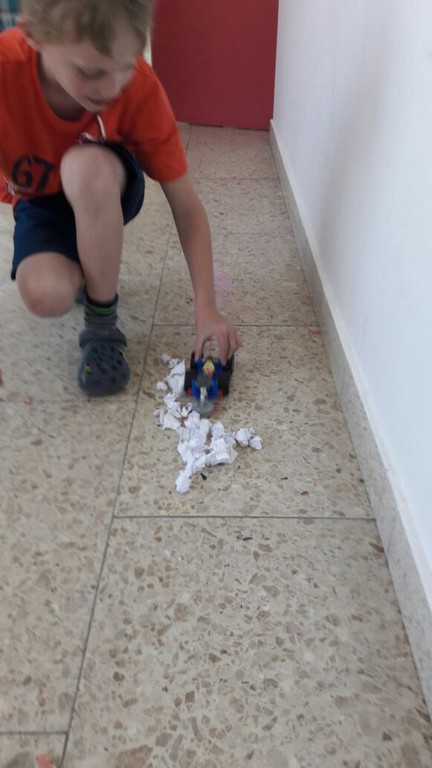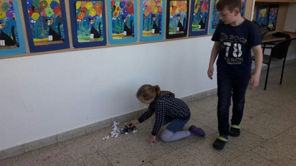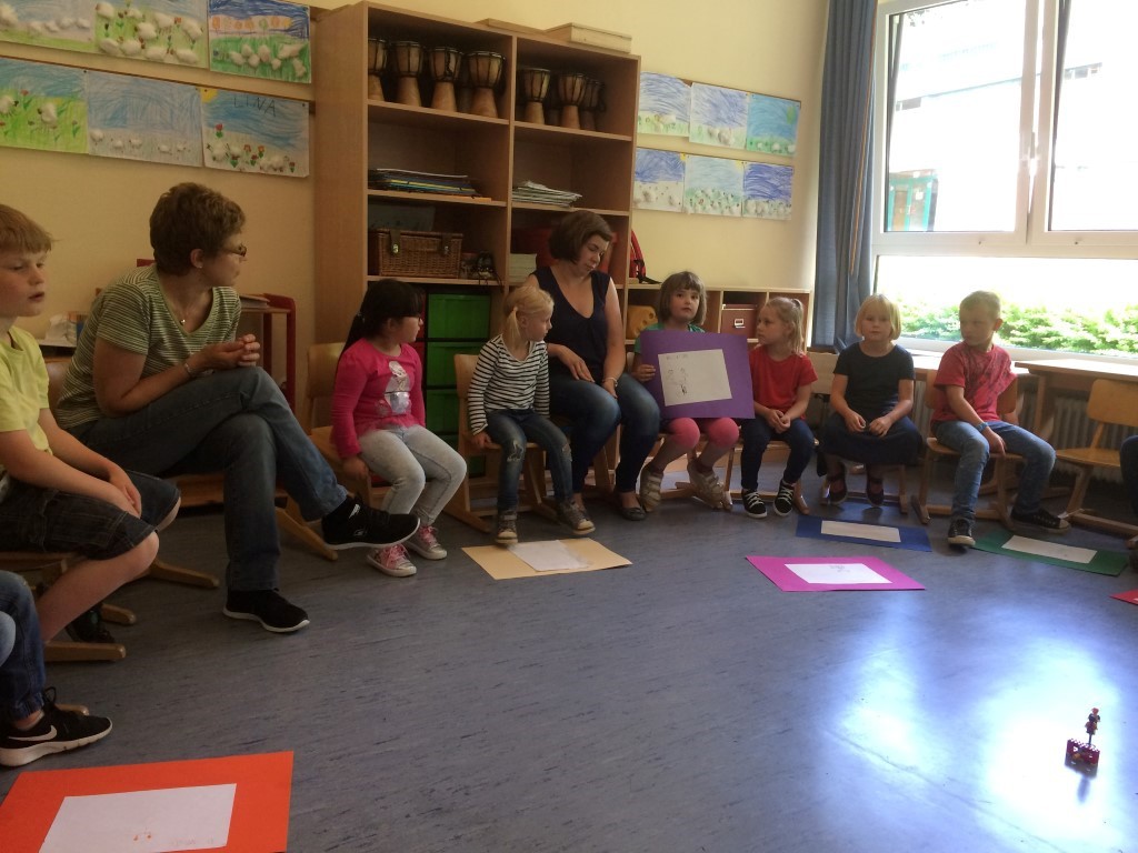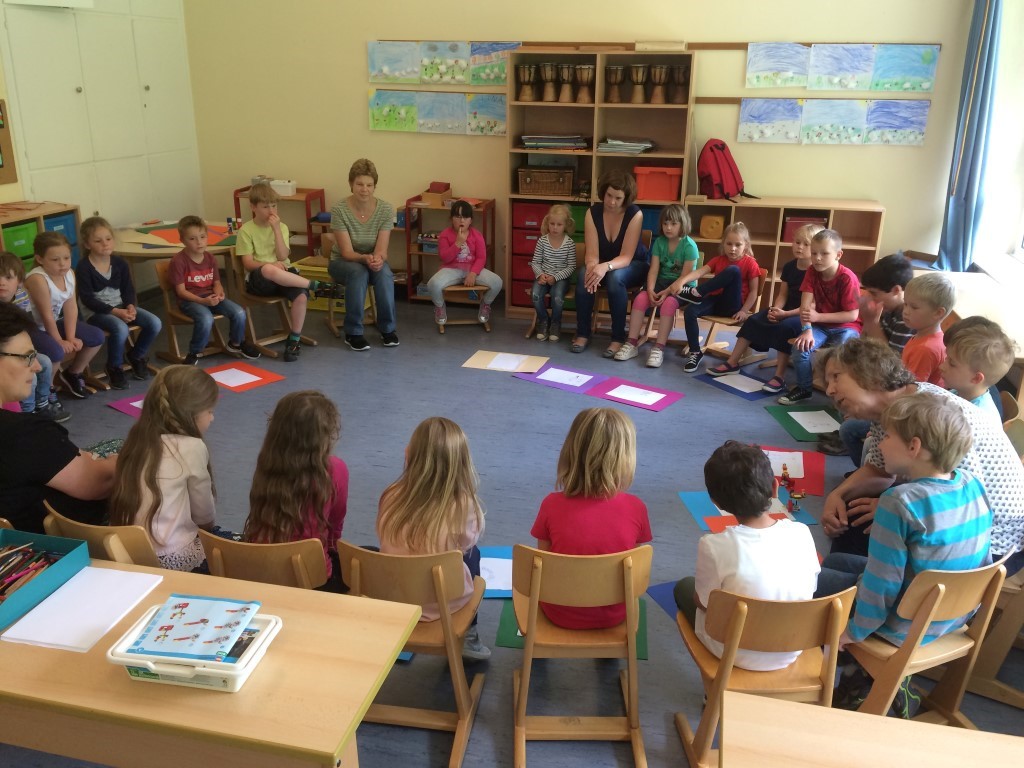 Am Montag, den 26.06.2017, trafen sich einige Maxikinder aus dem Kirchhundemer Kindergarten mit den Schülern der AG "Haus der kleinen Forscher", um gemeinsam in die spannende Welt der einfachen Maschinen von Lego Education einzutauchen. Zu Beginn des Treffens lernten sich Kinder, Erzieherinnen und Lehrerinnen in einem Stuhlkreis kennen. Frau Kirchhoff zeigte allen ein Bild von einem Lego-Bauwerk und die Kinder stellten zunächst Vermutungen an, um was es sich auf dem Bild handelt. Einige kamen schnell darauf, dass sich das gebaute Teil wahrscheinlich bewegen könnte. Es fielen Begriffe wie "drehen" und "Karussel". In kurzer Zeit fanden sich gemischte Gruppen, bestehend aus einem Schulkind und zwei Maxikindern, und mit Feuereifer gingen alle ans Werk: Baupläne wurden studiert, verschiedene Möglichkeiten des Zusammensetzens besprochen und schließlich schafften es alle Gruppen, das Karaussel fertig zu stellen. Damit die Kinder sich weiter auf altersgemäße Weise mit der Funktion ihres Karussels auseinandersetzen konnten, lautete die nächste Aufgabe: Zeichne ab, was du eben gebaut hast. Für einige Kinder erwies sich dieser Auftrag als zu komplex und so entstand als Vereinfachung die Idee: Zeichne, was du besonders wichtig findest. Die Kinder kamen so zu vielen unterschiedlichen Ergebnissen: einige malten die Zahnräder, andere konzentrierten sie auf die beiden Figuren und wieder andere zeichneten das komplette Bauteil. Im Stuhlkreis konnten die Kinder anschließend ihre Werke vorstellen und erläutern, bevor es ans gemeinsame Aufräumen ging. Ein Lied im Stehkreis beendete den tollen Nachmittag. Und wenn die Maxikinder nach den Ferien eingeschult werden, wartet auf sie eine Austellung, an der sie bereits mitgewirkt haben.