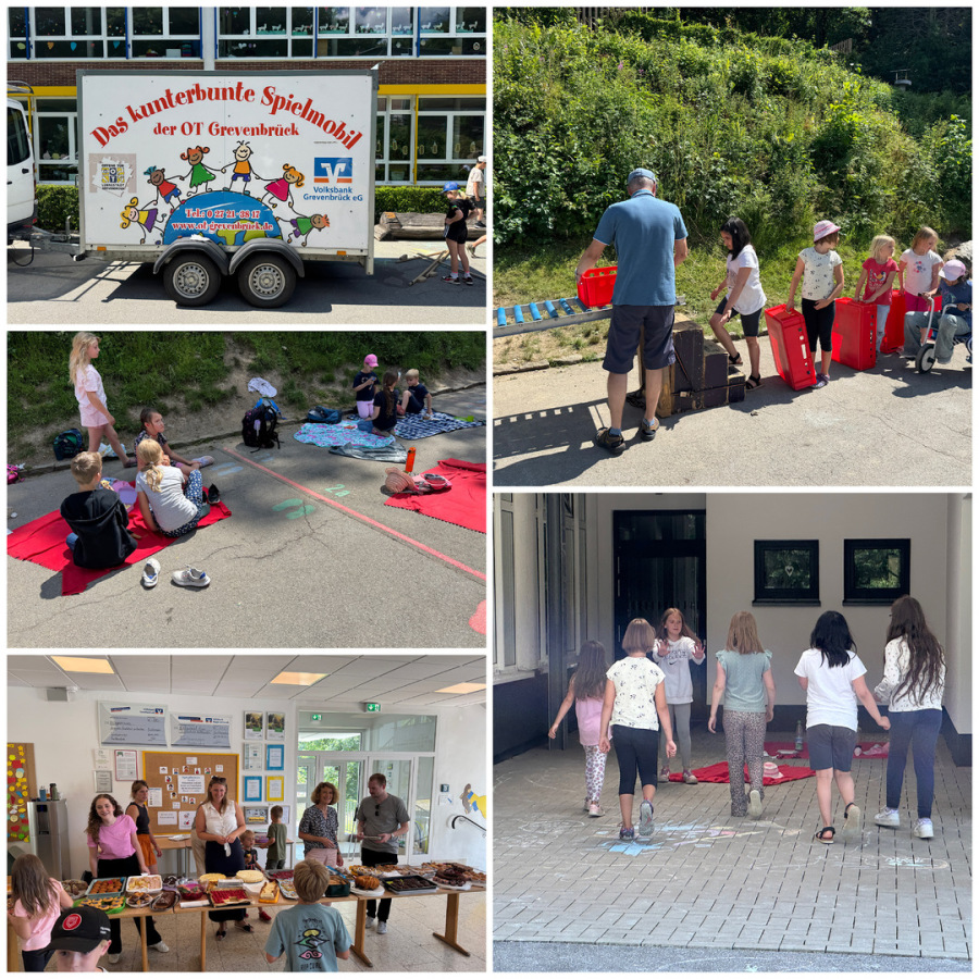 Am Ende des Schuljahres findet an der KGS das Schulpicknick statt. Die Eltern und das Schulteam backen für die Kinder und mit roten Decken ausgestattet darf auf dem Schulhof fröhlich geschmaust werden. In diesem Schuljahr war auch das Spielmobil der OT da. Wie immer war es ein schöner Nachmittag, der uns und den Kindern viel Freude macht.